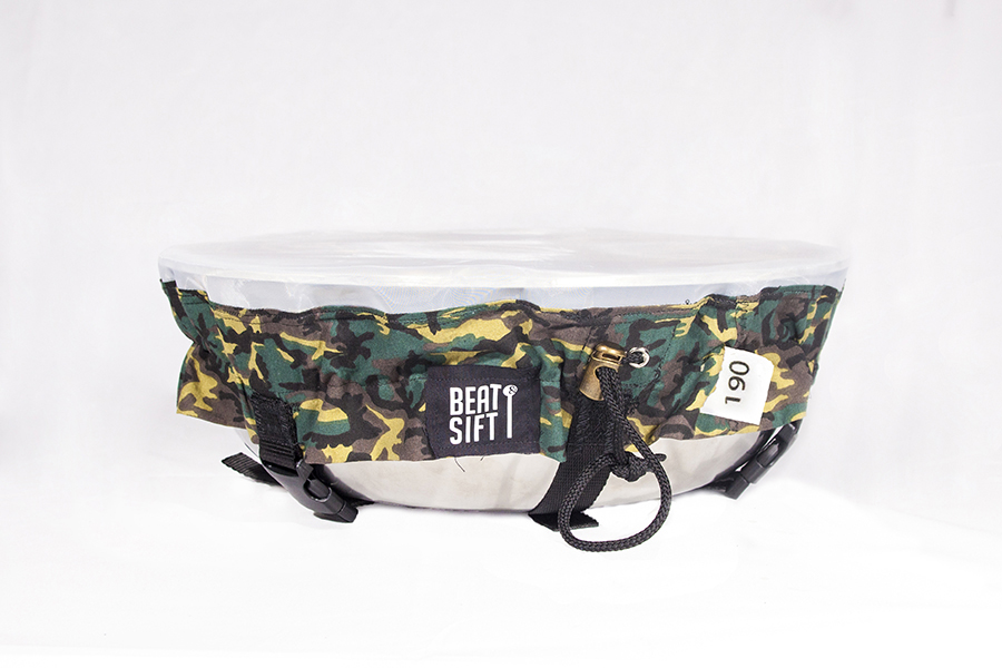 Beat and Sift consists of a fabric bag made of 100% natural cotton with a nylon rope on the side that includes a manual adjustable fastening, and two thick crossed straps with a quick release buckle. Thanks to these fastenings, the Beat and Sift can easily adapt to any bucket. The mesh on the bottom of the bag is available in 220-190-160 microns, and it’s safely attached with double seams in order to guarantee Beat and Sift’s resistance and durability over time.