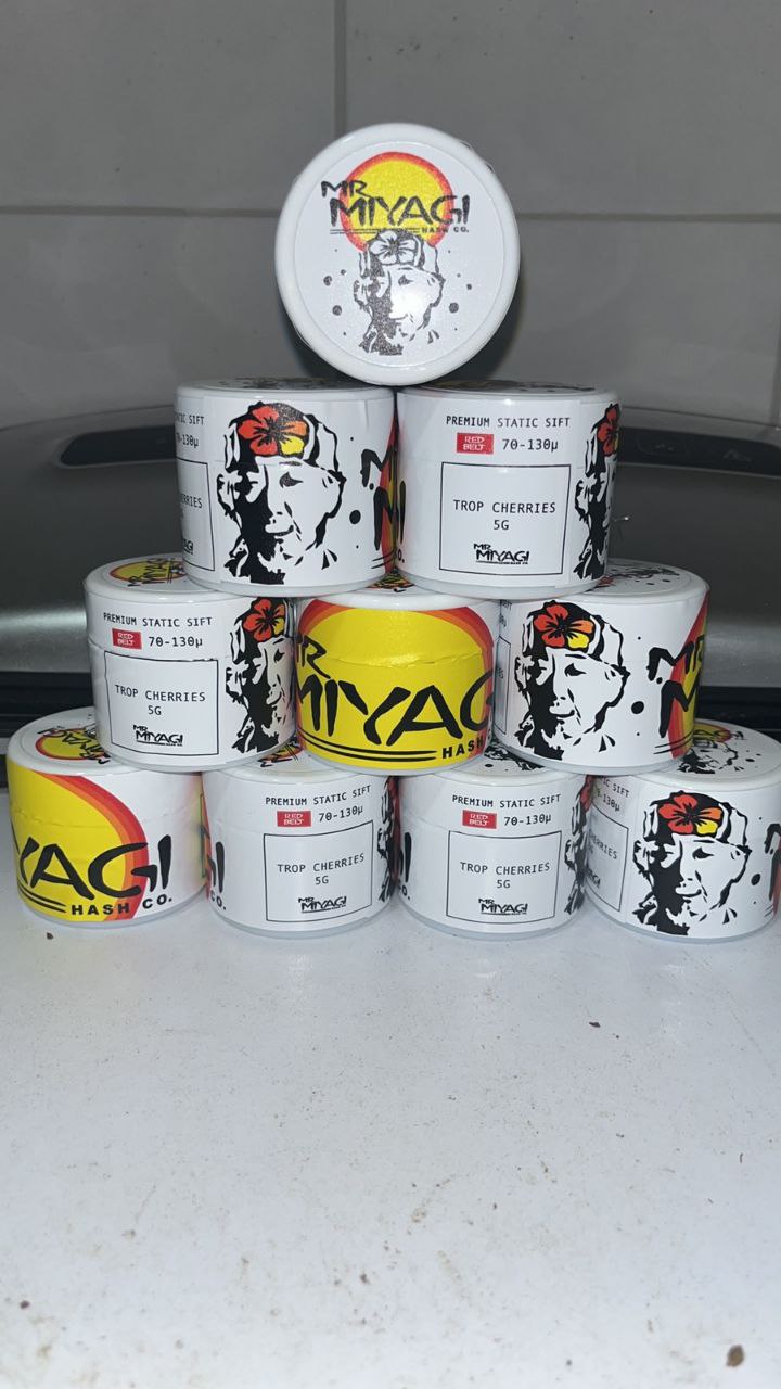 Experience Trop Cherries by Mr. Miyagi – a premium static sift hash bursting with juicy cherry & tropical terpenes. Limited small-batch release.